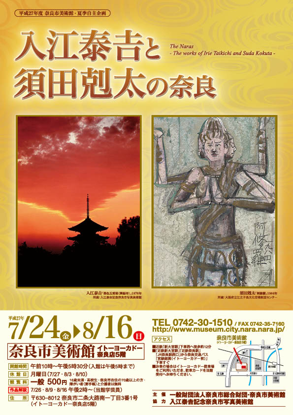 □ 奈良市美術館で「入江泰吉と須田剋太の奈良」展 (2015.7.10) 展覧会:「入江泰吉と須田剋太の奈良」 会場:奈良市美術館 会期:2015.7/24-8/16 http://www.museum.city.nara.nara.jp/ (画像をクリックすると拡大します) |