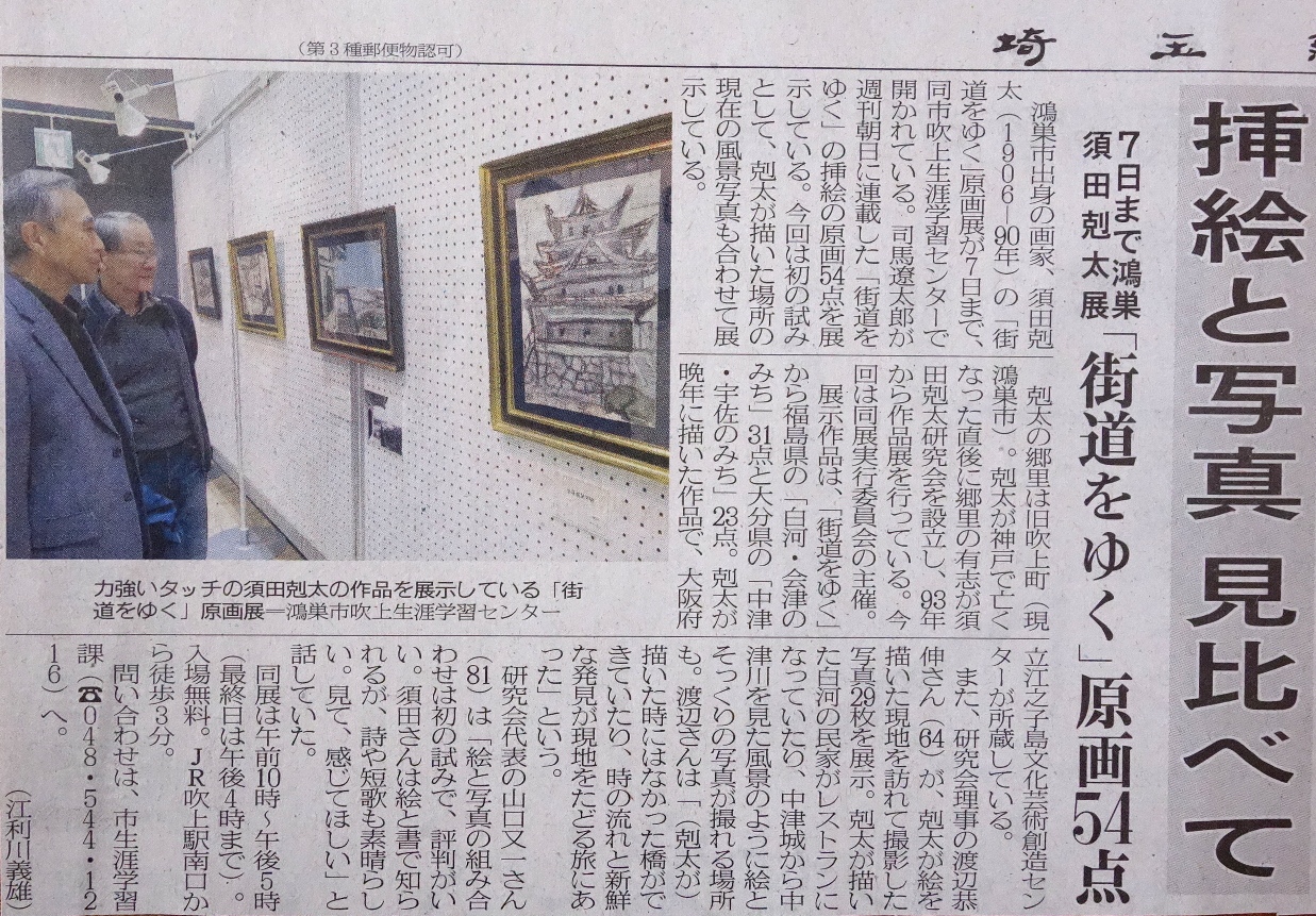 □ 須田剋太「街道をゆく」原画展: 展覧会を紹介する記事が2015.11.4の埼玉新聞に掲載されました。 (画像をクリックすると拡大します) |