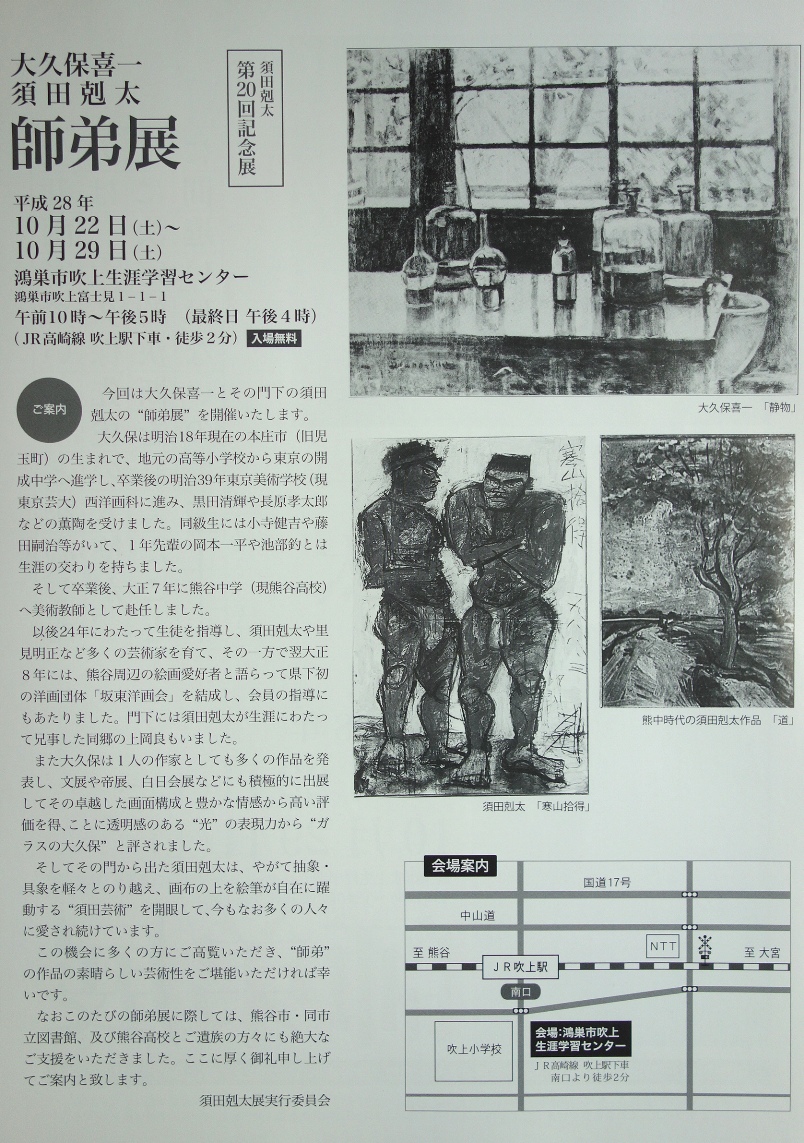 今年は、須田剋太が(旧制)熊谷中学で美術を教わった大久保喜一との師弟展。