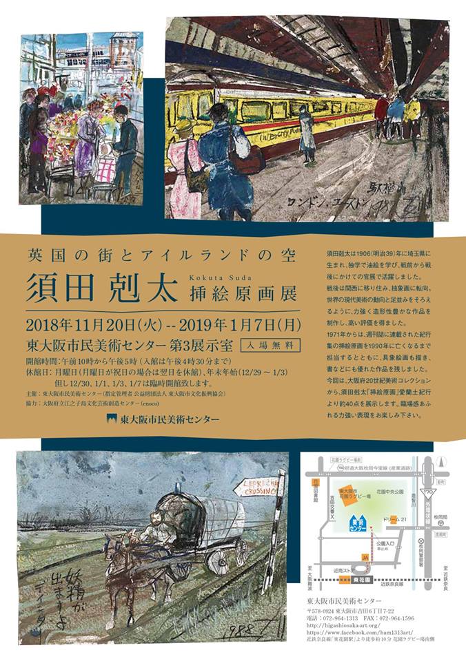 □ 「須田剋太挿絵原画展 英国の街とアイルランドの空」 (2018.11.20) 会場:東大阪市民美術センター 会期:2018.11/20(火)-2019.1/7(月) 『街道をゆく30.31愛蘭土紀行』から約40点の原画が展示されている。 (画像をクリックすると拡大します) |
